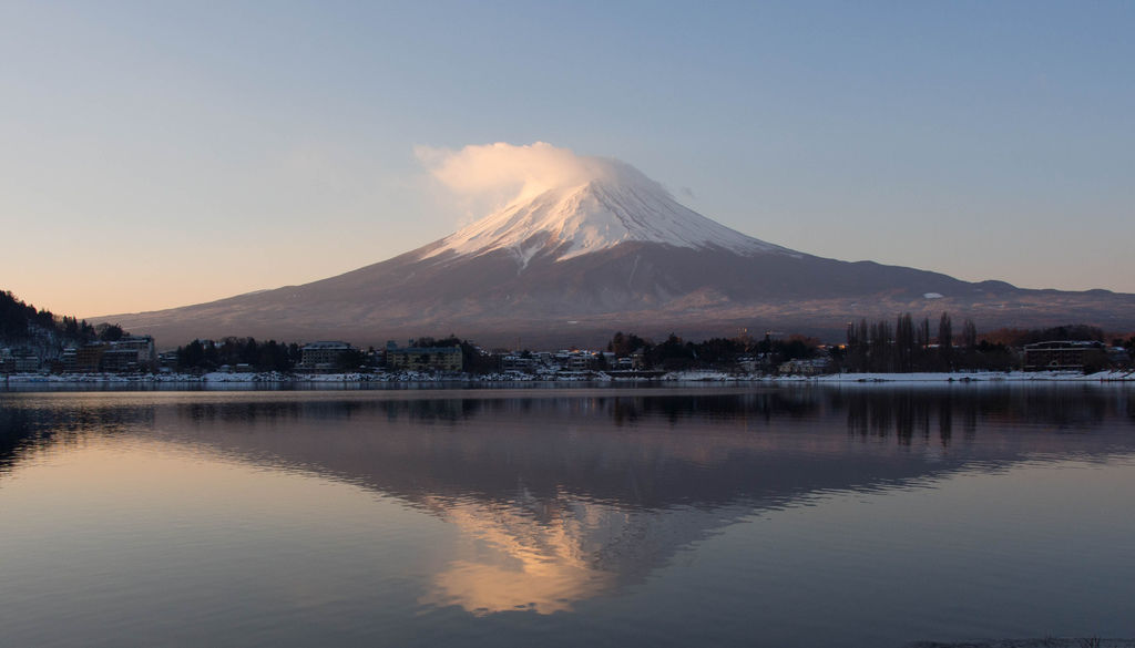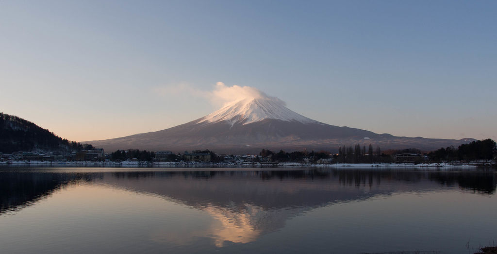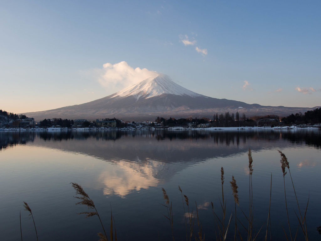 如果要看到逆富士(富士山的倒影)就得住河口湖北岸。