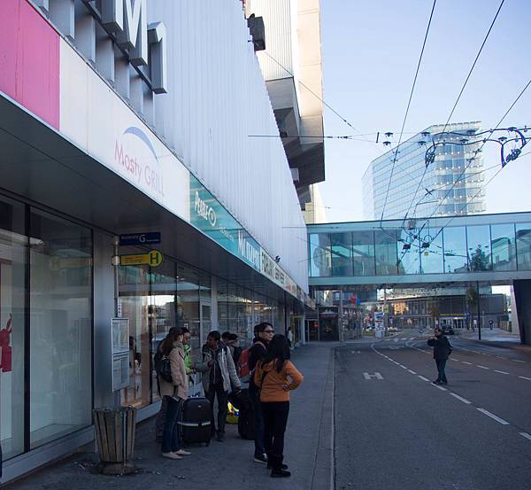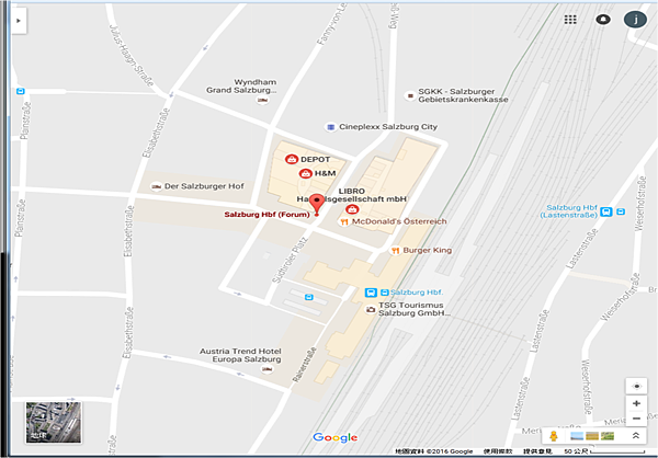 就可以見到圖中紅色標記的公車站Salburg Hbf(Forum Kaufhaus)