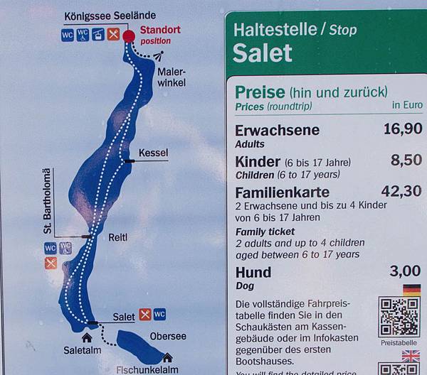 坐到Salet來回船票(中間碼頭可以任意上下船),可以走到Obersee(國王湖上湖),成人票是€16.9(2014.10)