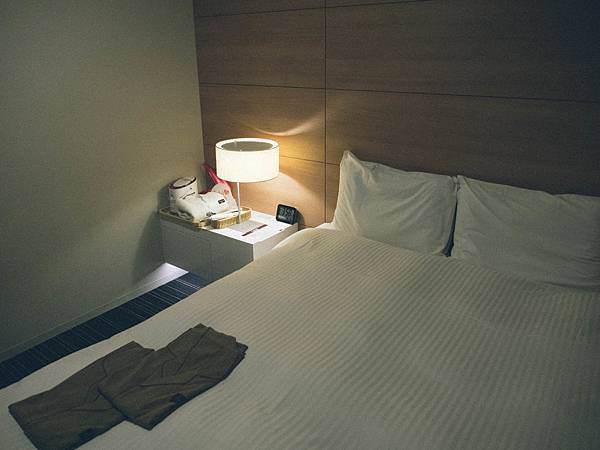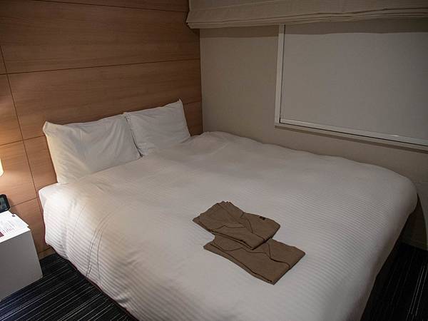 上野三井花園的雙人床,有標準size(196cm×140cm. )和Queen size(196cm×160cm ),床上有放置兩件睡衣。