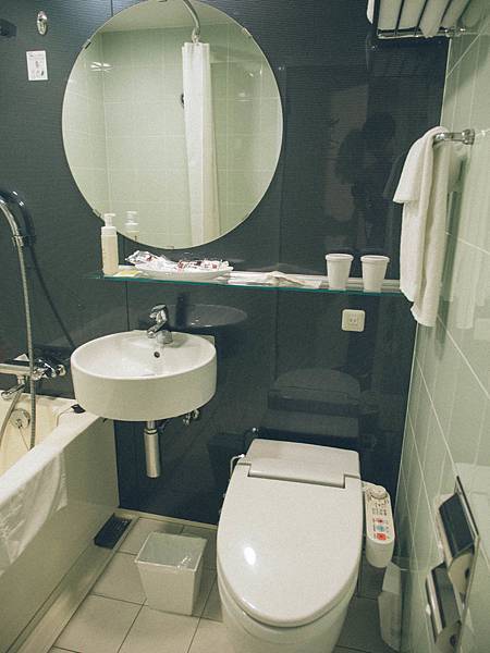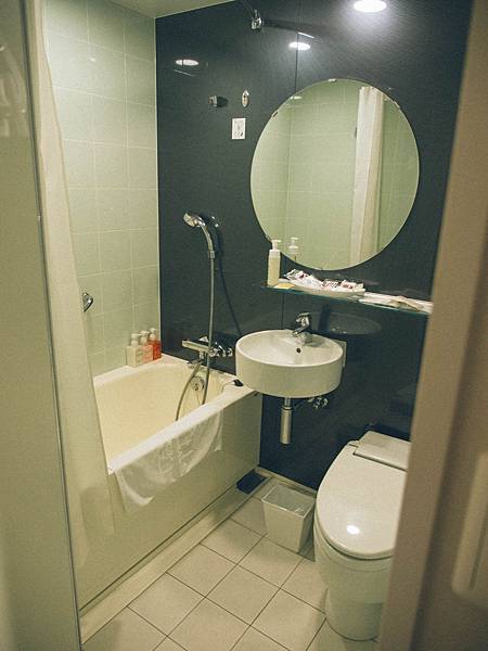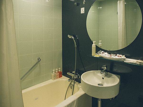 浴室空間也算寬敞,也曾經住過浴缸和免治馬桶連在一起,幾乎沒有站立空間的商務旅館。