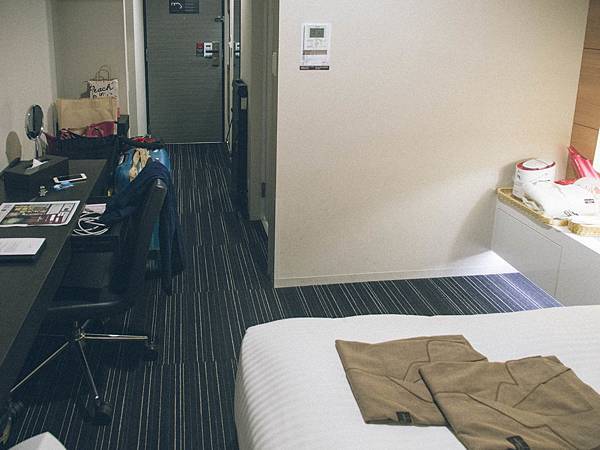 日本商務旅館普遍都很小,24吋行李箱一攤開就沒地方走路了。