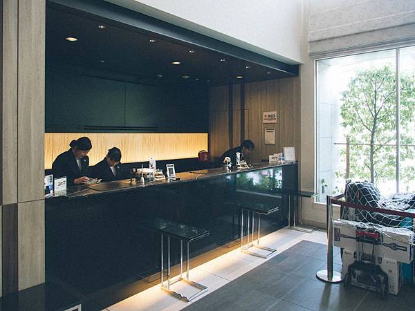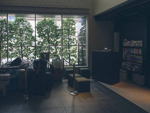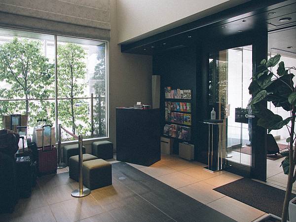 上野三井花園的大廳很簡潔明亮,大片落地窗外種植著樹木,巧妙的避開都市叢林的景象。