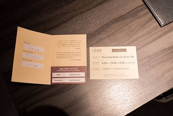 checkin 時拿的一張是Wi-Fi密碼和check out 時間11:00前,