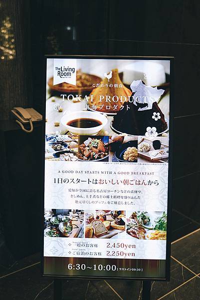 電梯旁有個飯店的數位廣告看板,上面拍到的是飯店The living room餐廳的早餐.