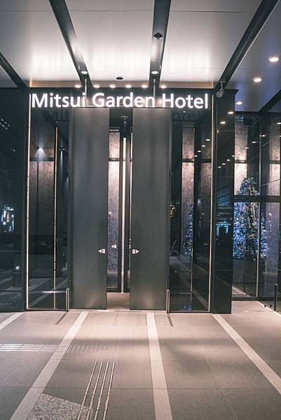 一樓挑高的電梯,大大的飯店名稱Mitsui Garden Hotel ,很有氣勢。