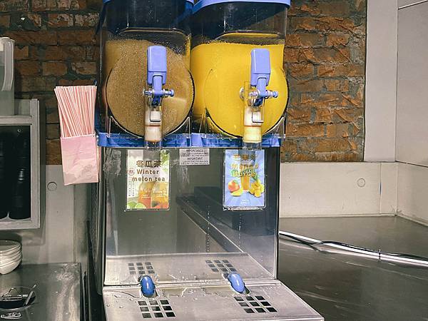 飲料吧,有汽水機(Soda fountain)和冬瓜茶、芒果汁。