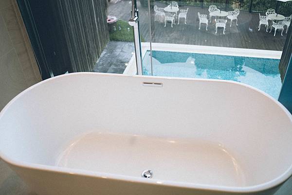 原森林的浴缸都是這種薄型獨立浴缸,住慣了飯店的石沏浴缸後,是有點不習慣。