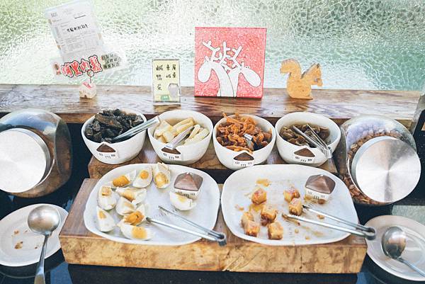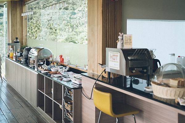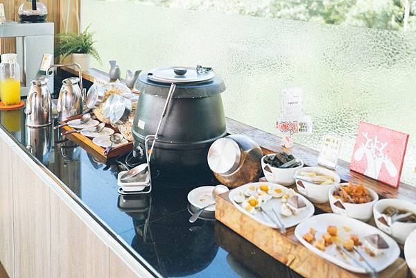原森林的早餐餐廳位於頂樓是各亮點,食物是中式肉鬆粥、與西式火腿起司麵包都有,可以讓你吃得很滿足。
