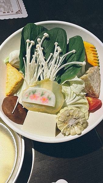 有玉米、香菇、青菜、豆腐、番茄、芋頭、丸子等