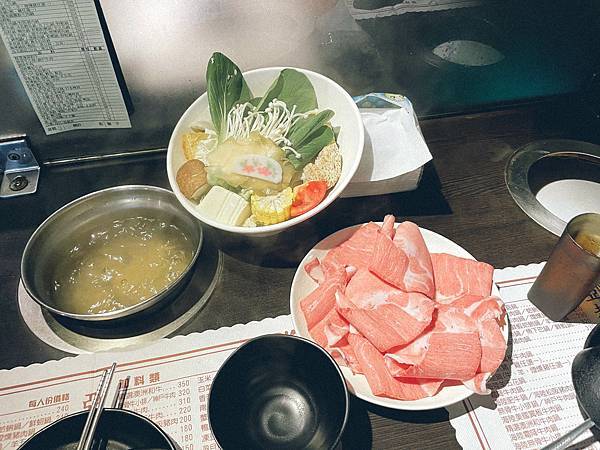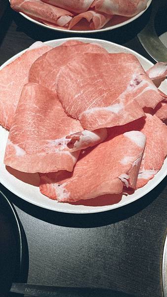上選豬肉鍋,豬肉的擺盤有花點巧思,肉片數量大概八片。