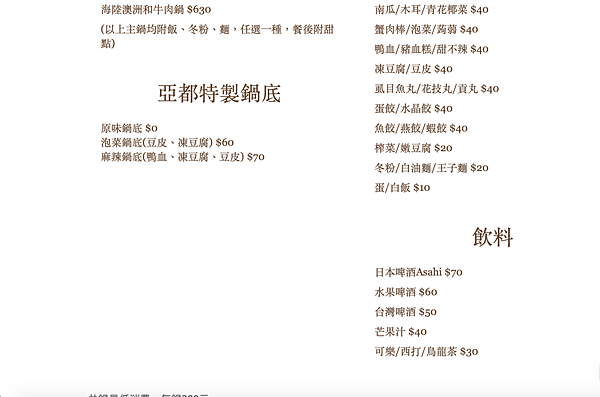 亞都迷你小火鍋店的餐很簡單,沒有提供冰淇淋等副餐。