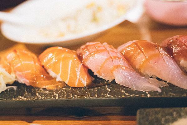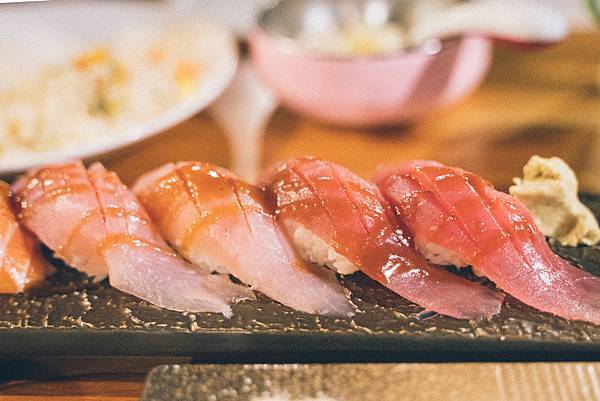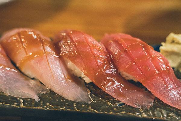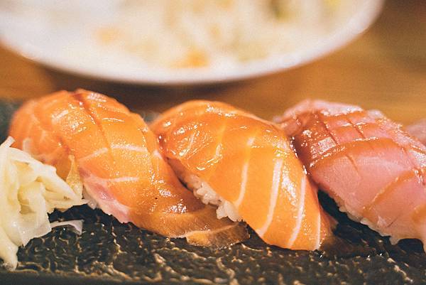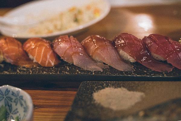 共六貫,應該有鮭魚、旗魚、鮪魚,肉片蠻厚實的。