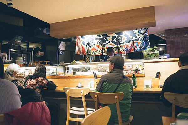 魚日式料理店面外只有一層樓,外觀是落地窗,很能一眼看進裡面的客人是否滿座。