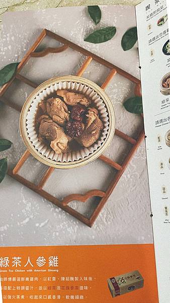 綠茶人參雞由師傅嚴選鮮嫩雞肉,以紅棗、陳紹醃製入味後,