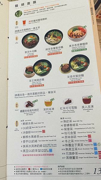 主菜七選一,有茶油麵線、綠茶茄蔬拌麵、茶香荷葉排