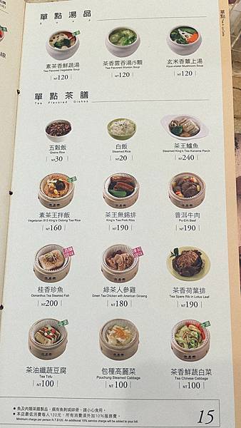 單點湯品120及單點茶膳,主餐180~240,配菜100