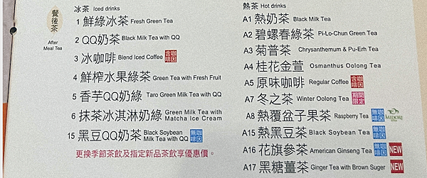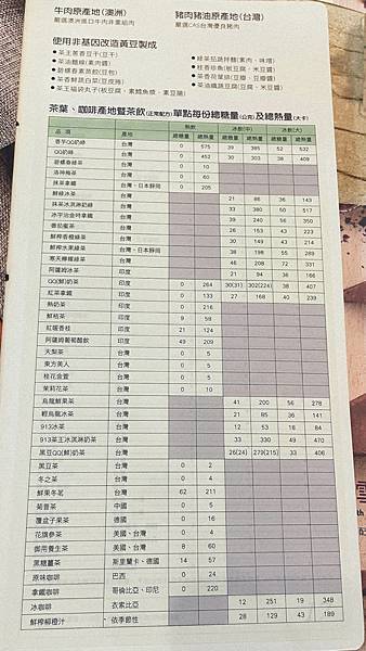 店內還有說明茶類及咖啡之產地、糖量及熱量。