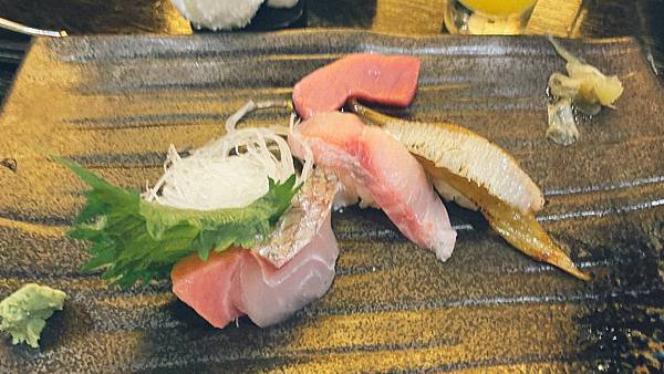 第一道生魚片料理,總共有五種魚類,吃的出來生魚片是很新鮮的。