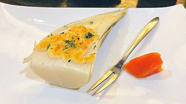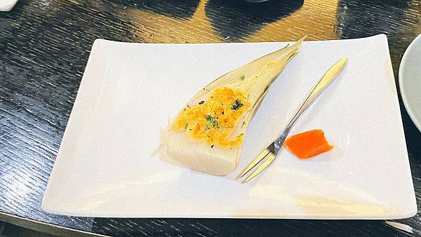 明太子竹筍燒,竹筍挑的是未出土比較嫩的,清甜口感,上面覆蓋鹹鹹的明太子中和一下口味。
