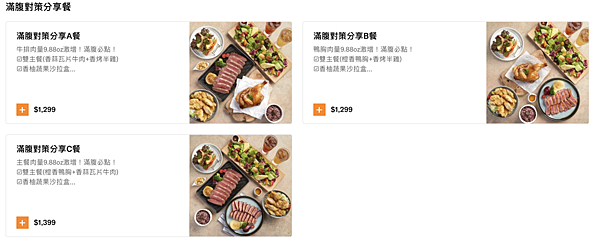 滿腹對策分享B餐 : 雙主餐(橙香鴨胸+香烤半雞) 1299