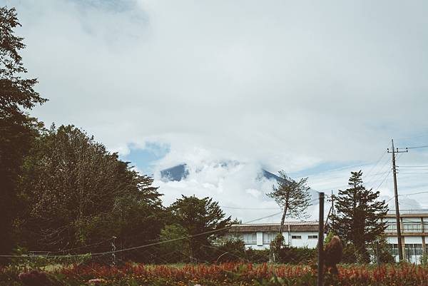 精進湖子抱き富士ビューポイント(VIEW POINT),富士山頭被烏雲壟罩,富士山前面小山是大室山