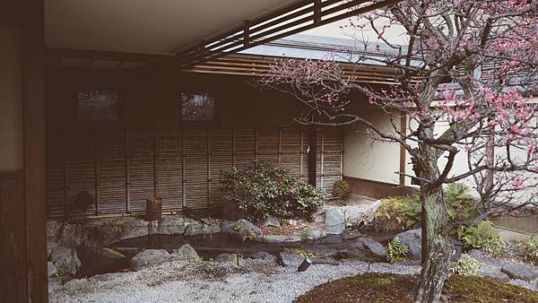 花傳抄溫泉旅館的庭園造景,有些梅花已經盛開
